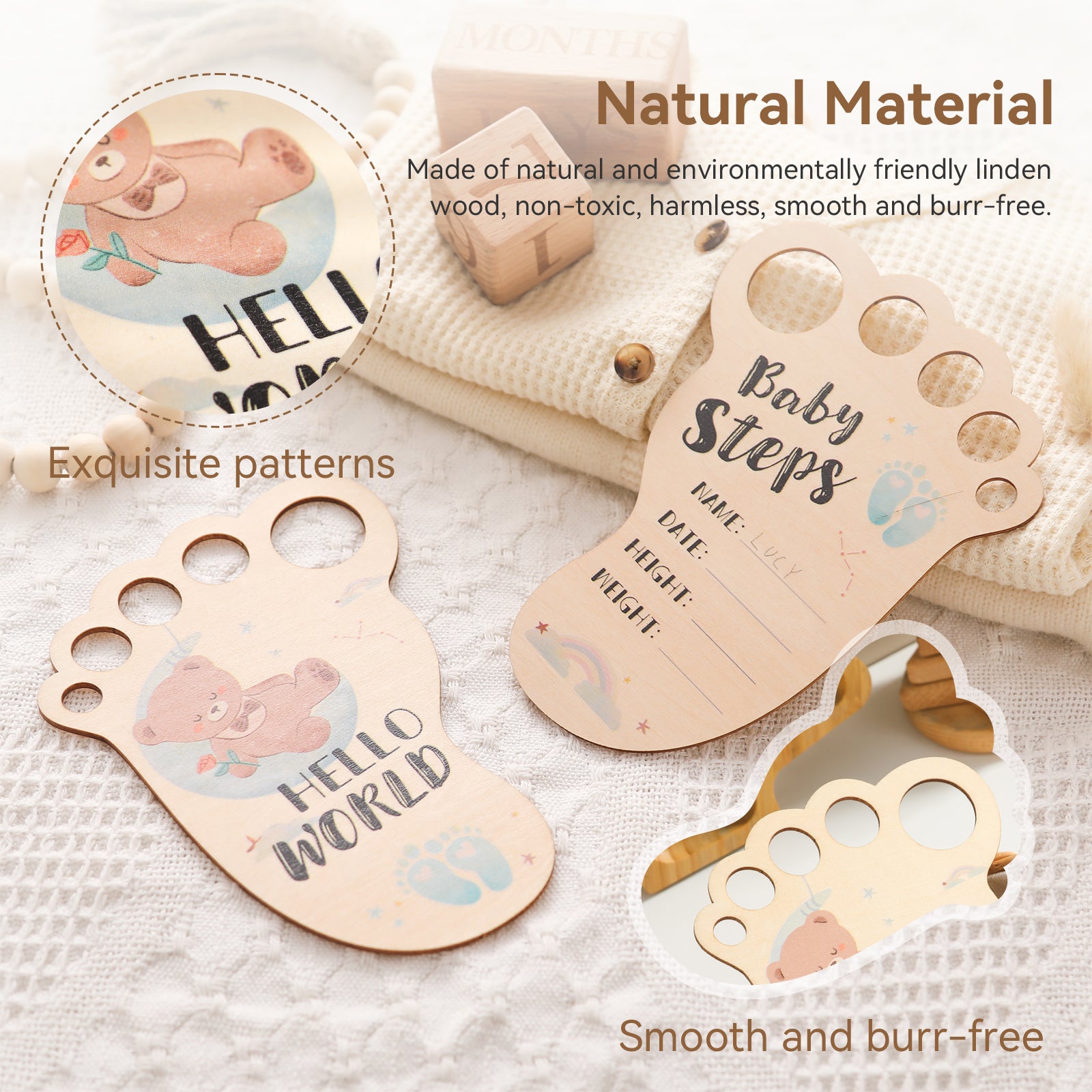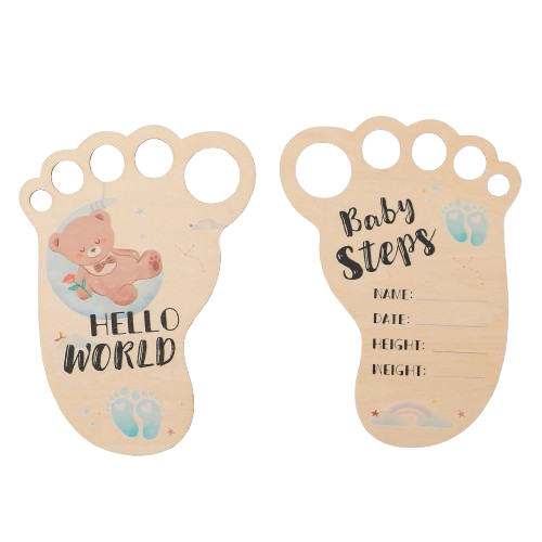 Our adorable wooden baby footprint keepsake is perfect for recording your newborn’s name, date, height, and weight.